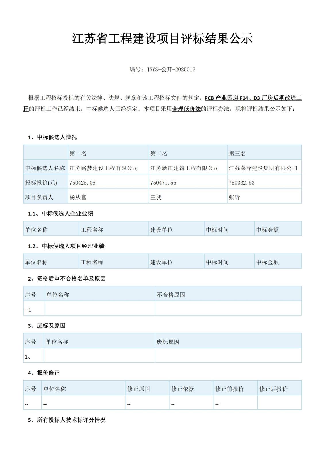 江蘇省工程建設(shè)項目評標(biāo)結(jié)果公示