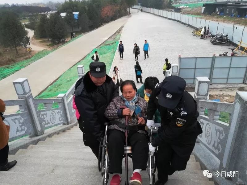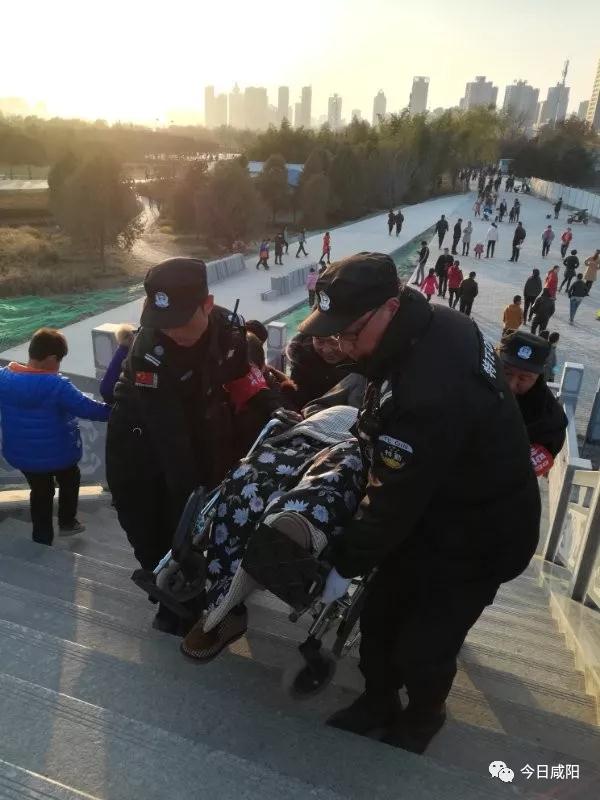 12月10日上午10時許,年逾90的老人只有一人陪同想上廊橋參觀,幾位安保人員一起將老人連帶輪椅一同抬上廊橋,待老人參觀完后又把老人抬下去,實現(xiàn)了一段被樓梯阻隔的夢想,說不出話的老人感動得淚流滿面。
