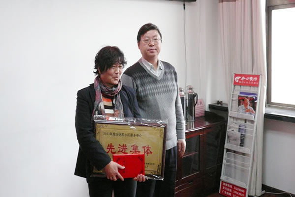 李總向榮獲2011年物業(yè)公司先進(jìn)集體的安谷苑服務(wù)中心頒獎(jiǎng)