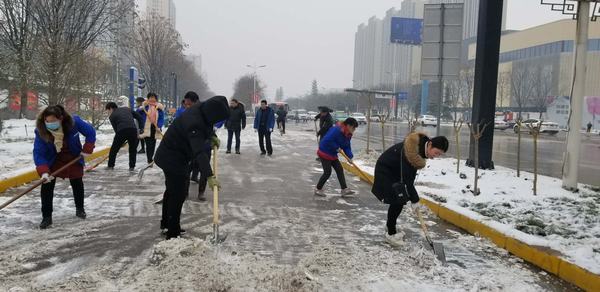 由于氣溫較低,主干道路的雪被壓得很瓷實(shí),清掃工作十分困難。天氣雖然寒冷,但是大家熱情高漲,即使手凍的通紅,也擋不住大家的干勁。都爭先恐后,團(tuán)結(jié)協(xié)作、井然有序,掃的掃、鏟的鏟,干勁十足,一心想著將路面的積雪盡快清除,經(jīng)過一天的奮戰(zhàn),基本將包抓路段、主干道積雪清掃干凈,確保了廣大居民、業(yè)主的出行安全。